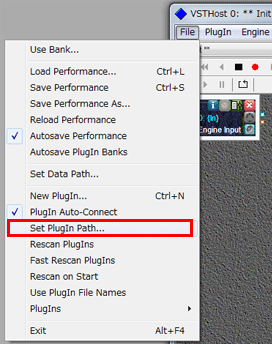 - VST Host のメニュー「File」→「Set PlugIn Path…」を選択。
