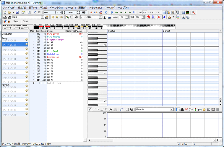 DominoはフリーのMIDIシーケンサ。レコンポーザのようなGUIのシーケンサとしては Cherry が老舗だが、Dominoはその機能アップ版みたいな感じ。